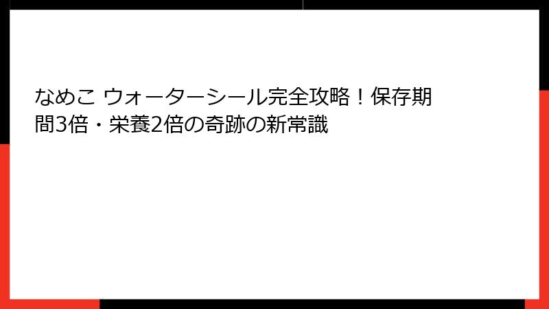 この記事を最後まで読めば、なめこ ウォーターシールの全貌が明らかになります。