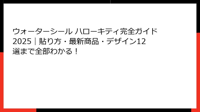 - ハローキティのウォーターシールが可愛すぎる!2025年最新コラボ商品を全紹介