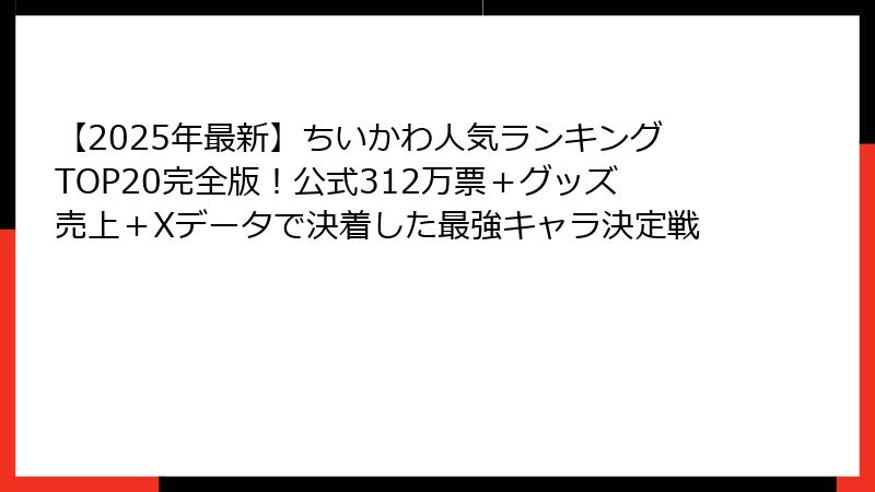 【2025年最新】ちいかわ人気ランキングTOP20完全版!公式312万票+グッズ売上+Xデータで決着した最強キャラ決定戦