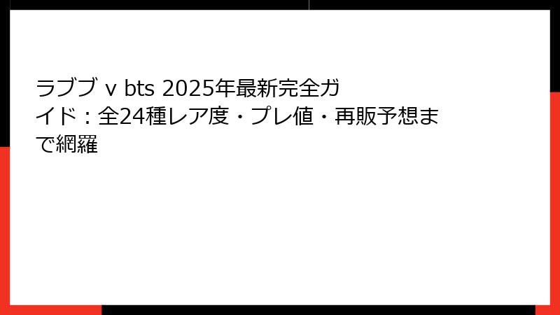 - メタディスクリプション: 「2025年最新!ラブブ v BTSコラボ全24種の定価・プレ値・レア度を完全網羅」