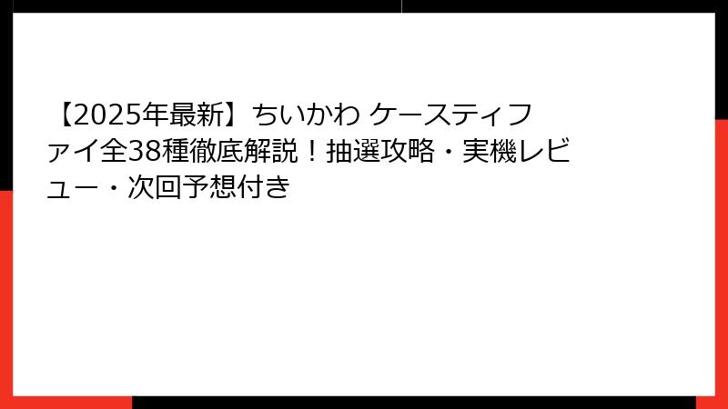 【2025年最新】ちいかわ ケースティファイ全38種徹底解説!抽選攻略・実機レビュー・次回予想付き