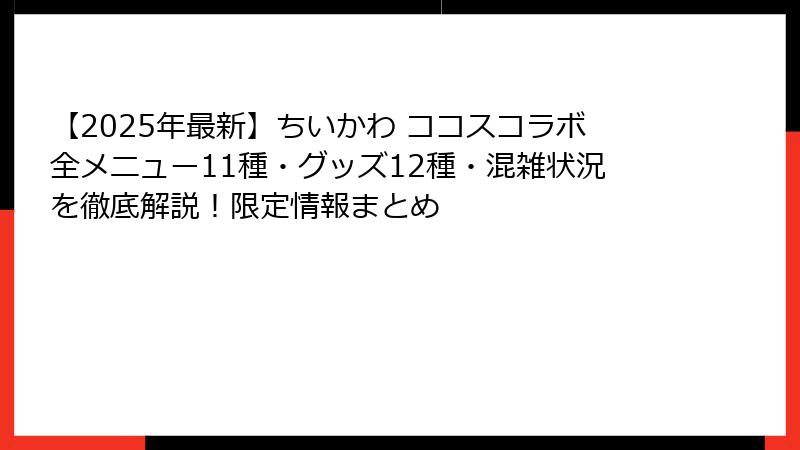 - 【2025年最新】ちいかわ×ココスコラボが熱い!全メニュー&グッズを徹底解説