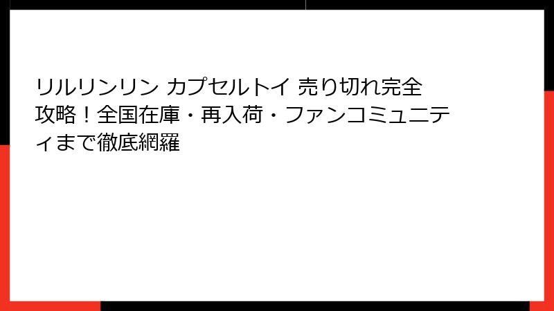 - 全国の売り切れ状況リアルタイムレポート!リルリンリン カプセルトイの在庫を探す究極ガイド