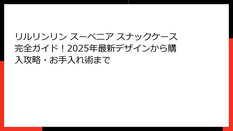 リルリンリン スーベニア スナックケース完全ガイド!2025年最新デザインから購入攻略・お手入れ術まで