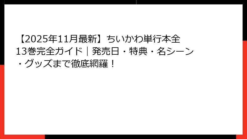 - ちいかわ単行本全巻一覧|2025年11月時点の最新刊情報と発売スケジュール