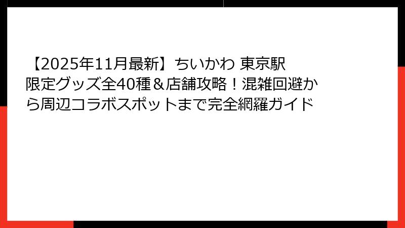 - ちいかわファン必見!東京駅でしか手に入らない限定グッズ&スポット完全ガイド