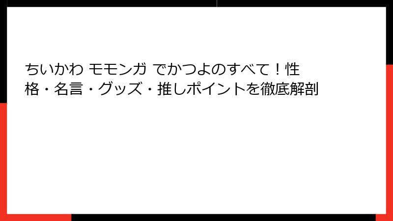 「ちいかわ モモンガ でかつよ」は、ファンコミュニティの絆を深めるキーワードなのです。