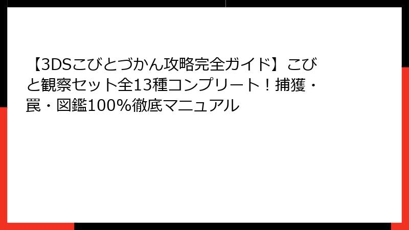 1. 【3DSこびとづかん攻略完全ガイド】こびと観察セットの始め方から全13種類コンプリートまで徹底解説!初心者必見