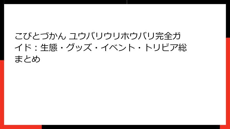 以上が、こびとづかんとユウバリウリホウバリを知るための入門ガイドの詳細です。