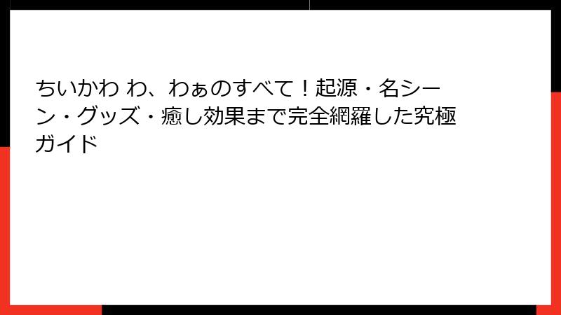 ちいかわ わ、わぁのすべて!起源・名シーン・グッズ・癒し効果まで完全網羅した究極ガイド