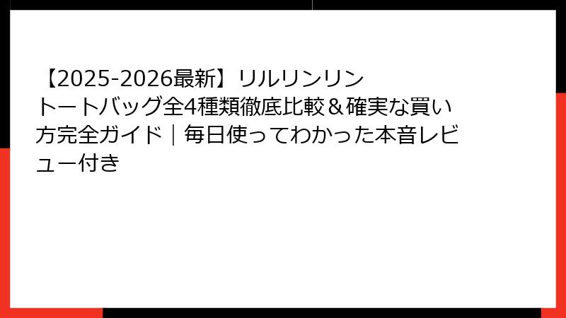 - 2025年版リルリンリン トートバッグ全4種類を徹底比較!違いが一目でわかる表付き