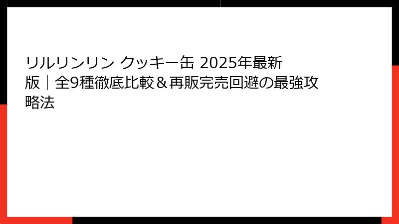 - 【保存版】リルリンリン クッキー缶 2025-2026の再販・予約攻略法を全部バラします