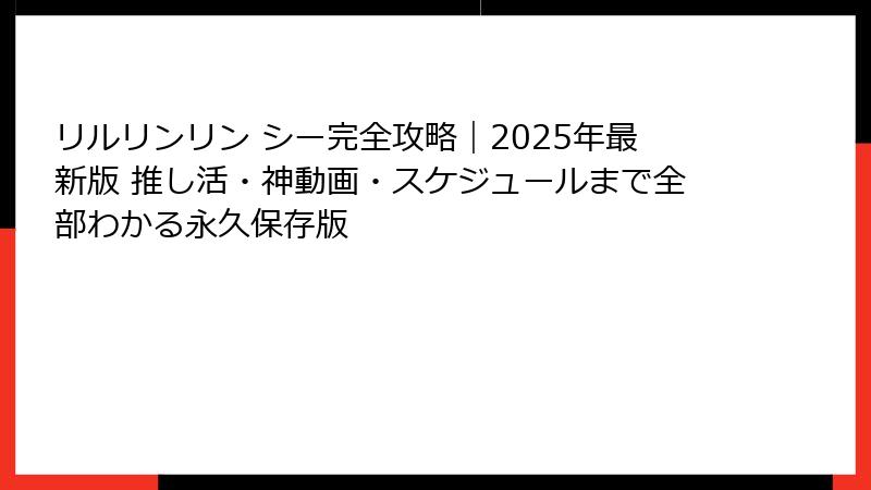 【リルリンリン シーを応援し続けるための完全ガイド】推し活の全て2025年版・永久保存版