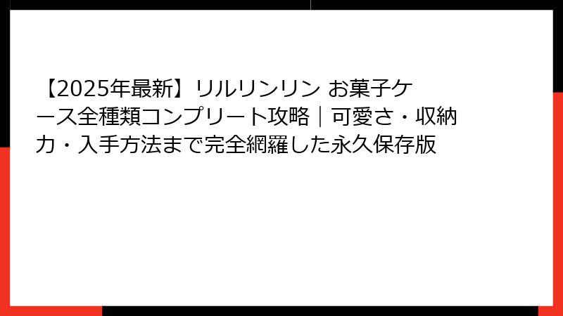 この記事を読んでいるあなたが「リルリンリン お菓子ケース」と検索してきたということは、もうその魔法に取り憑かれ始めている証拠。