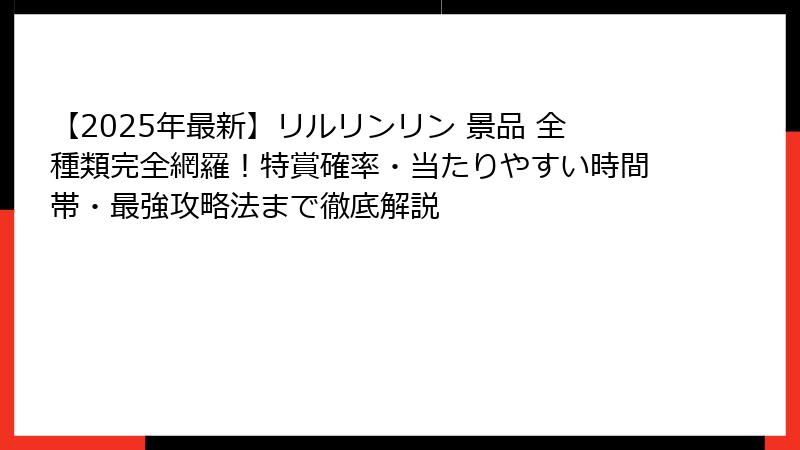 - 2025年最新!リルリンリン全景品一覧(特賞〜参加賞まで完全網羅)