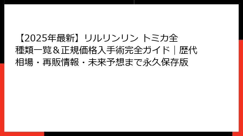 - 2025年リルリンリン トミカを確実に手に入れる方法&再販情報