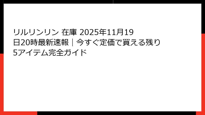 【2025年11月19日更新】リルリンリン在庫状況リアルタイム速報|今すぐ買えるのはこれだけ