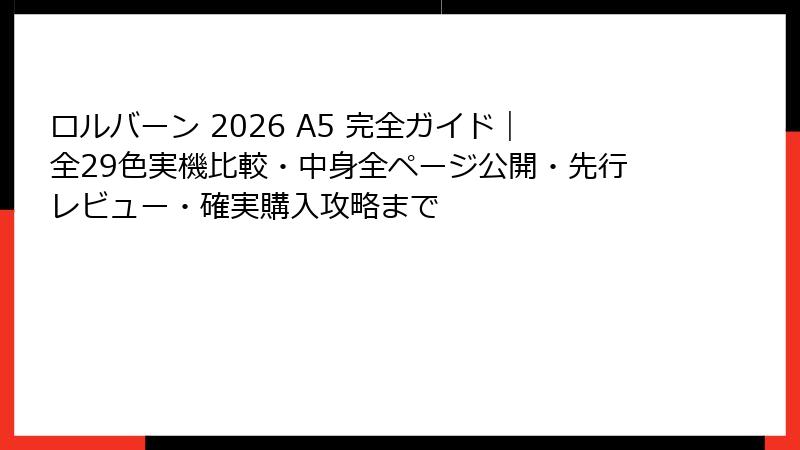 - ロルバーン 2026 A5を絶対に確実に手に入れるための購入完全攻略ガイド(2025年最新版)