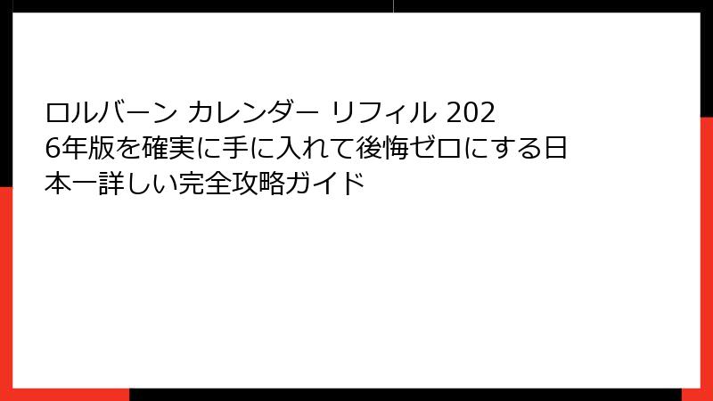 - 2026年版ロルバーンカレンダーリフィル発売日・予約情報・確実に入手する方法