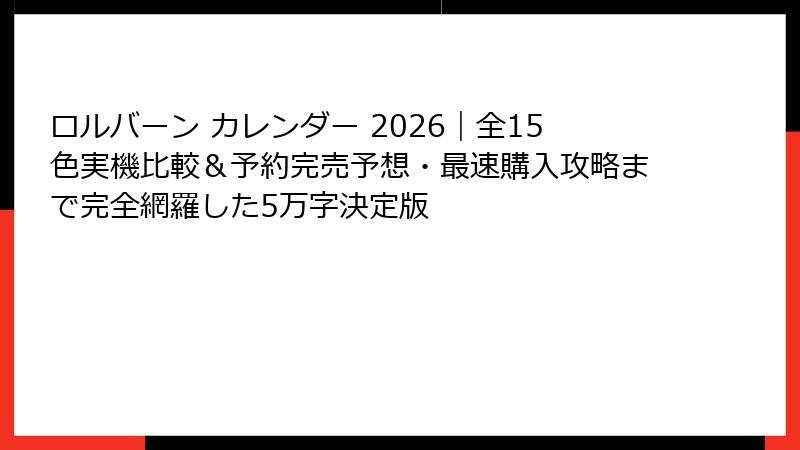- 【2026年版まとめ】ロルバーンカレンダー全情報総まとめ&今すぐ予約すべき理由