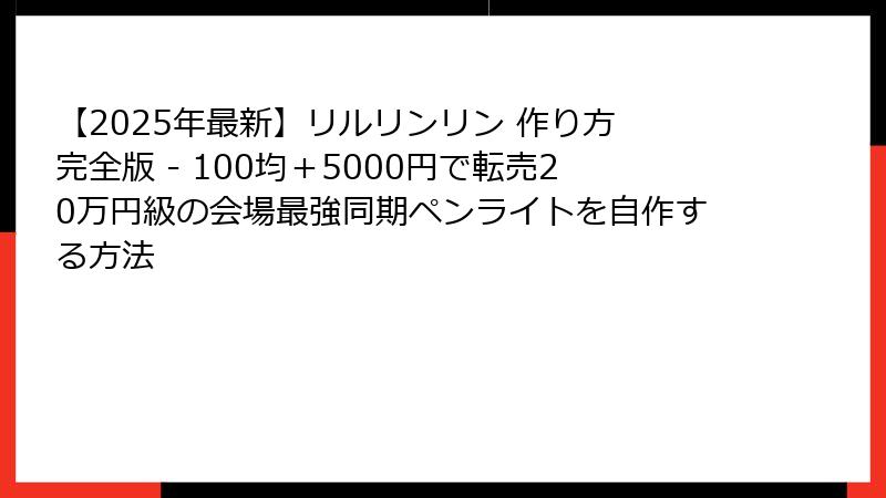 - ライブで100%目立つ!カスタムアイデア30連発&同期のコツ2025年最強テクニック完全版