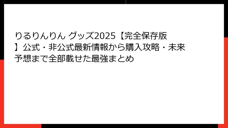 - 【永久保存版】りるりんりん推し必見!2025年後半~2026年に予想されるグッズ展開まとめ