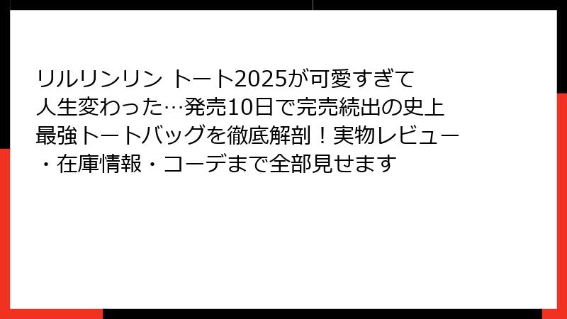 今すぐ死ぬほど欲しくなる!リルリンリン トート2025が発売10日で壊滅的完売続出の衝撃的事実