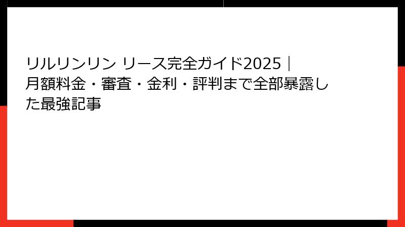 - リルリンリン リース完全ガイド2025|金額・審査・金利・実際に使った人の評判まで全部暴露