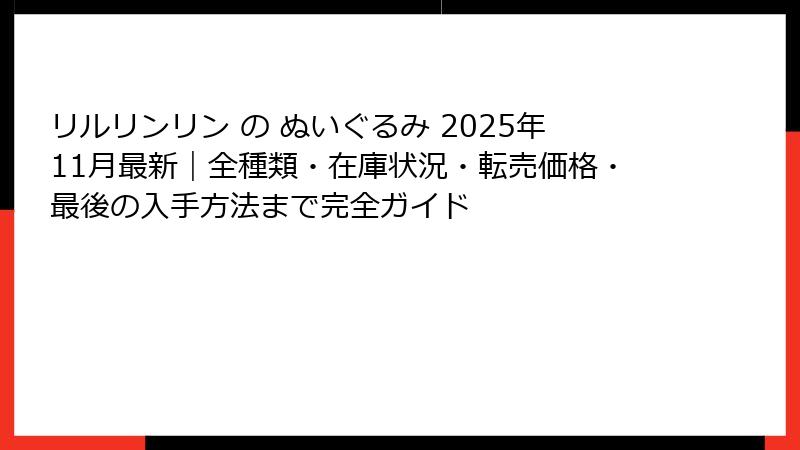 - 2025年11月20日現在「リルリンリンぬいぐるみ」はどこで買えるのか?リアルタイム在庫状況と最後の購入チャンスを完全公開
