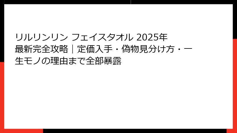 - 【2025年最新】リルリンリン フェイスタオルを確実に手に入れる方法5選