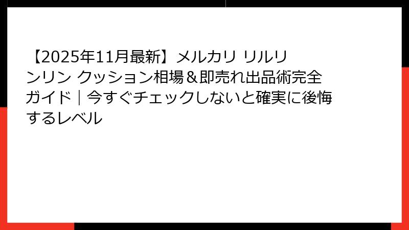- 【2025年最新】メルカリでリルリンリン クッションが爆売れ中!その理由がヤバい