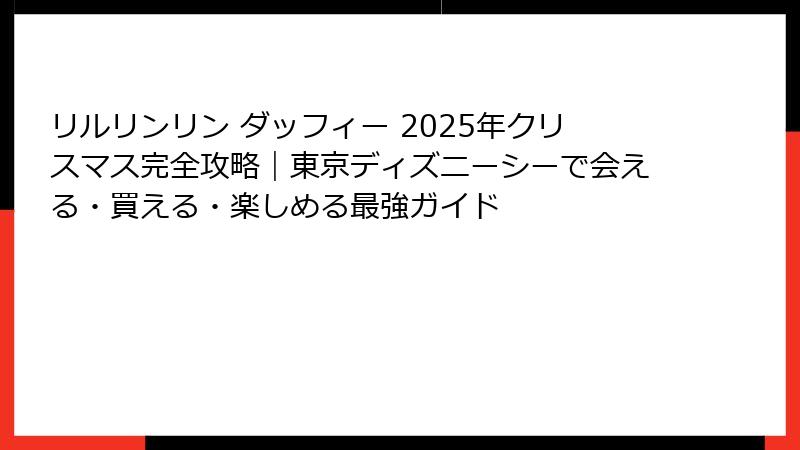 これで2025年の「リルリンリンとダッフィーのクリスマス」を120%、いや150%楽しめるはずです。