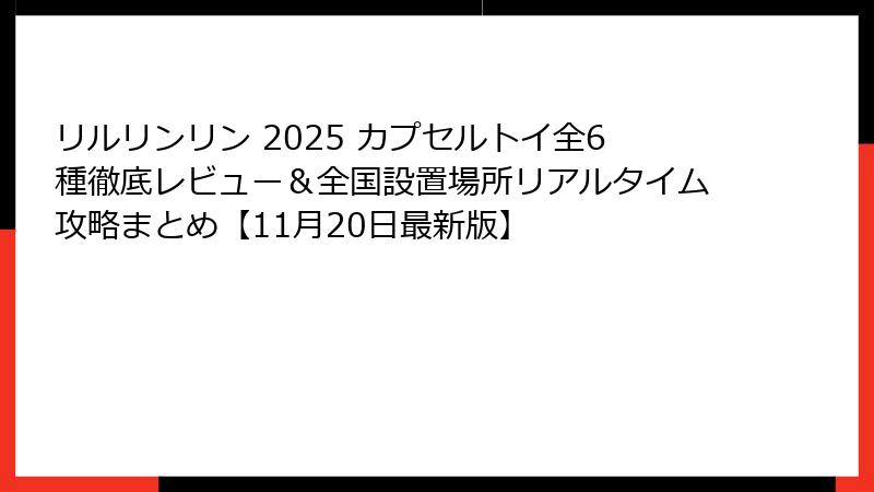 リルリンリン 2025 カプセルトイ全6種徹底レビュー&全国設置場所リアルタイム攻略まとめ【11月20日最新版】