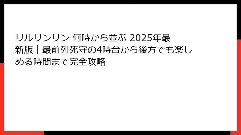 - リルリンリン 何時から並ぶ?結論から言うと●時が鉄則!2025年最新版