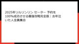 この記事は、あなたが「確実に欲しいリルリンリンを手に入れる」ための最強の武器になります。