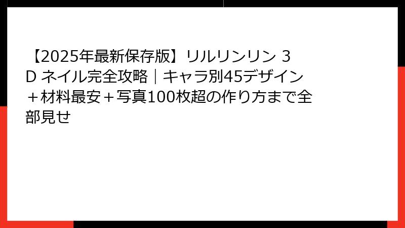 - 【キャラ別45選】2025年最旬リルリンリン3Dネイルデザイン集(実物写真大量)