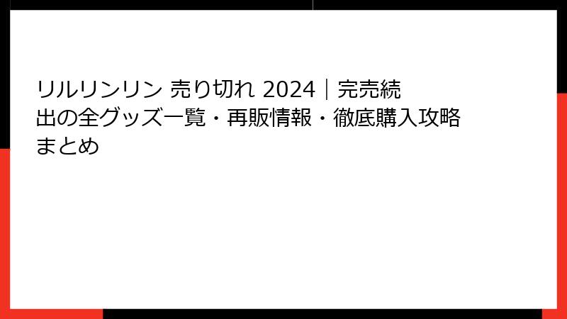 - 2024年リルリンリン売り切れグッズ一覧!完売した人気アイテムを一挙公開