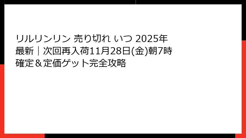 - 【確定情報】2025年リルリンリンの次回再入荷日は11月28日(金)朝7時!店舗・オンライン別最新スケジュール完全公開