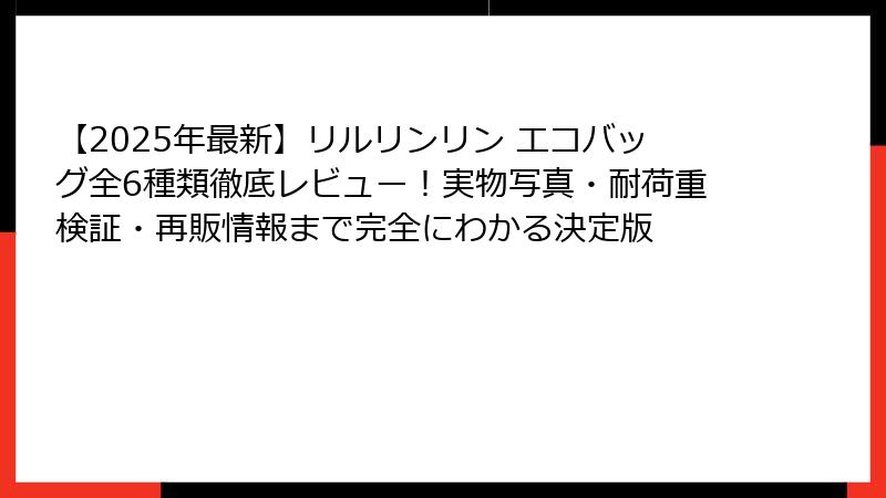 - 2024-2025年に発売されたリルリンリン エコバッグ全6種類を完全網羅!実物写真付き