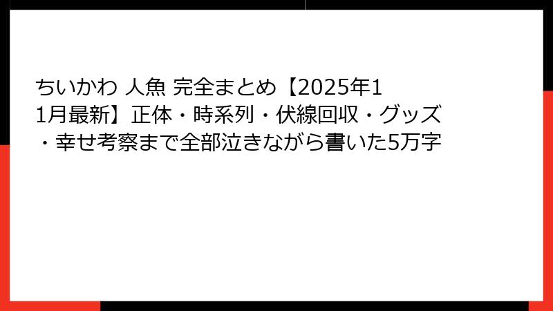 - 【ネタバレ注意】人魚編の時系列完全まとめ(2023〜2025年11月24日最新まで)