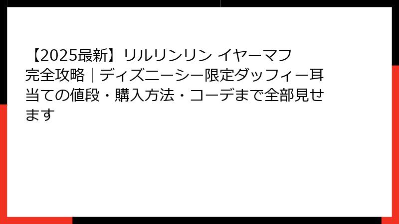- どこで買える?2025年リルリンリン イヤーマフ確実な購入方法&完全攻略マニュアル