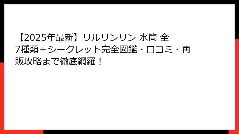 - 全6種類+シークレットまで完全網羅!2025年現在のラインナップ一覧
