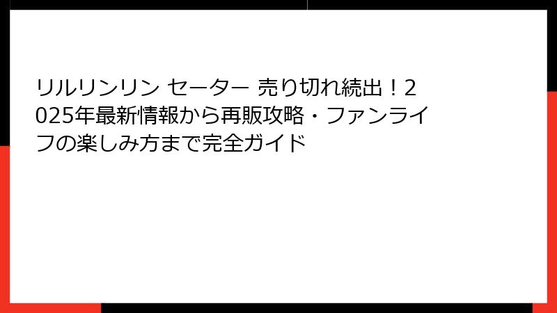 2025年現在、11月25日時点で既に多くの店舗やオンラインショップで完売が相次いでおり、検索キーワード「リルリンリン セーター 売り切れ」が急上昇しています。