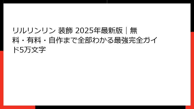 2025年最新|リルリンリン装飾素材 無料・有料 完全まとめ50選