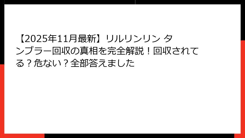 まず結論から:2025年11月25日現在、リルリンリン タンブラーは回収されていません