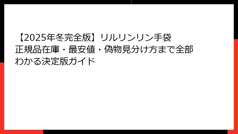 - 【在庫僅少】リルリンリン手袋の正規購入方法まとめ|2025年11月25日時点の最安値はココ!