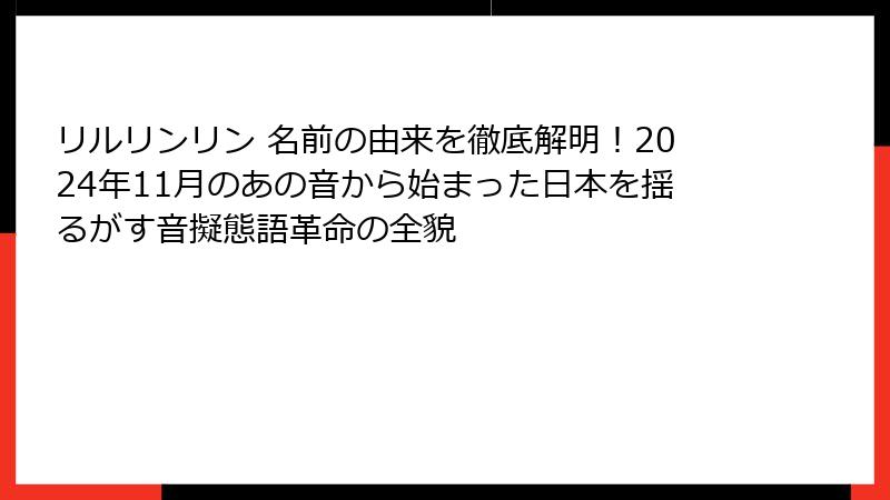 リルリンリンの正体を、現代の音擬態語革命として総括する。