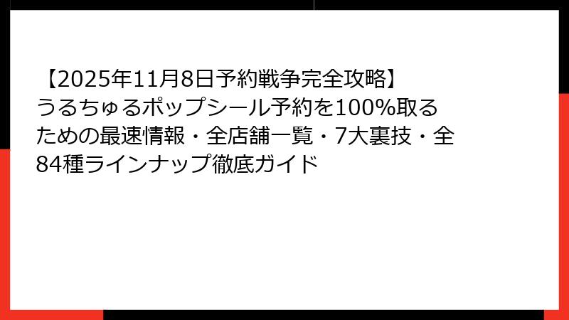 【2025年11月8日予約戦争完全攻略】うるちゅるポップシール予約を100%取るための最速情報・全店舗一覧・7大裏技・全84種ラインナップ徹底ガイド