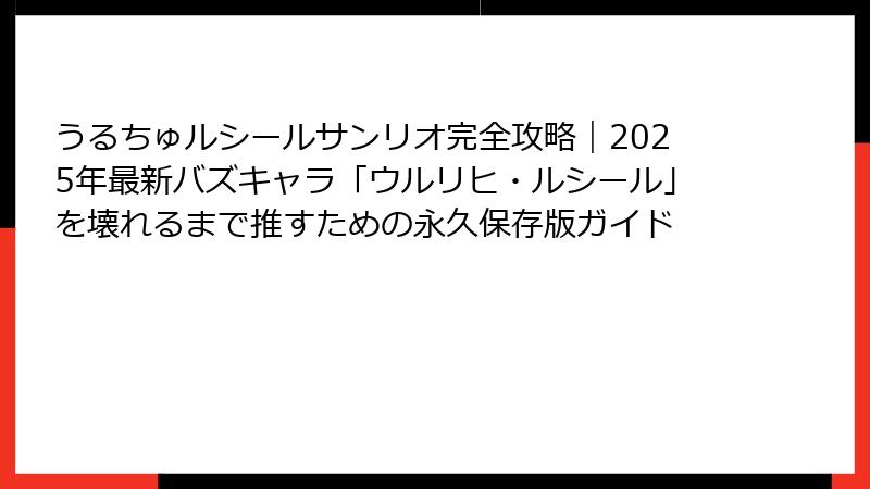 うるちゅルシールサンリオ完全攻略|2025年最新バズキャラ「ウルリヒ・ルシール」を壊れるまで推すための永久保存版ガイド