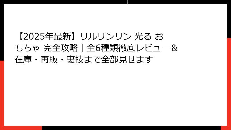 【2025年最新】リルリンリン 光る おもちゃ 完全攻略|全6種類徹底レビュー&在庫・再販・裏技まで全部見せます